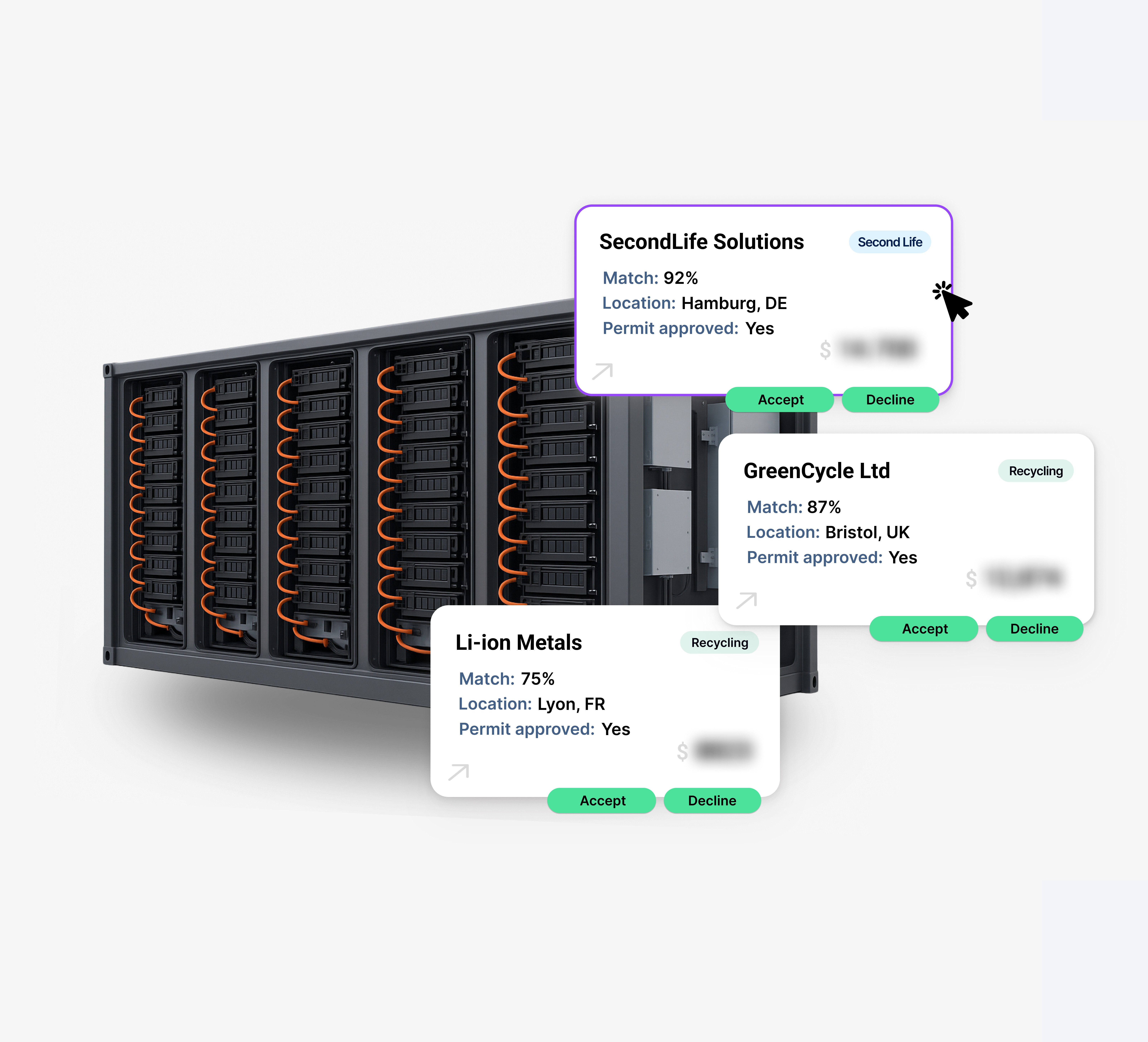 Turn recycling costs into revenue. Sell eligible packs and modules into second-life projects and capture more value.